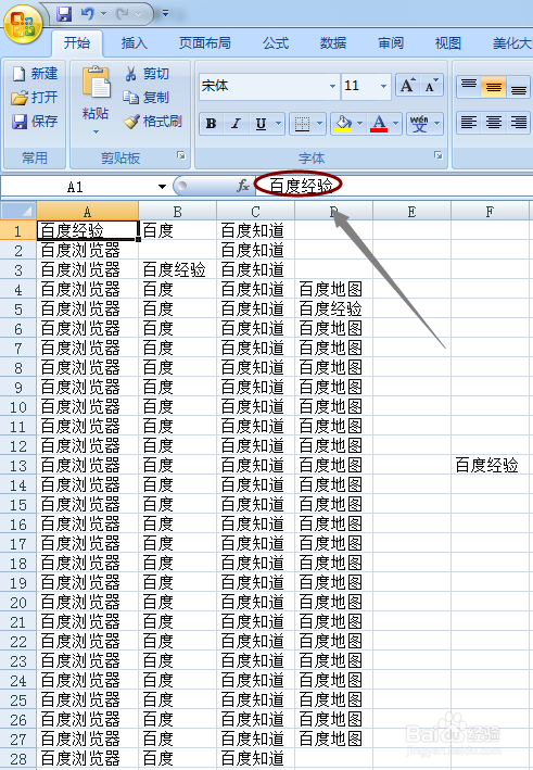 如图,比如我们有一张文字内容较多的表格,那么如何才能尽快的从中找到我们的目标关键词"百度经验"呢?