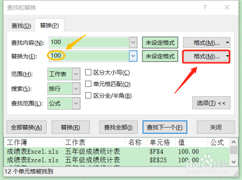 此时我们可以让这些关键字高亮显示,这样找起来就会一目了然,具体方法如下:在查找和选择对话框,我们切换到"替换",然后将替换内容和查找内容一致,接着点击替换右侧的格式下拉按钮...