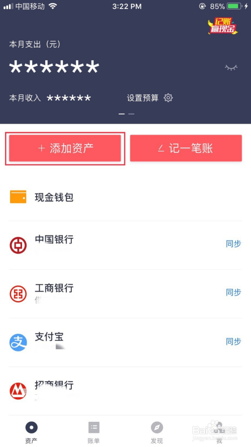 点击“添加资产”按钮,进入选择资产页面,点击“微信钱包”创建一个账户,一定要创建,不然无法找到微信同步的入口。