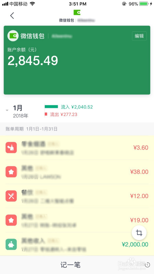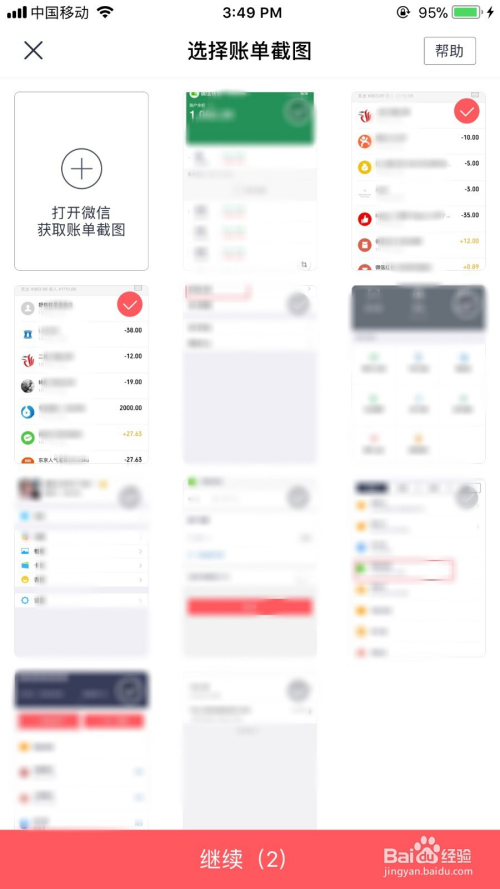 截图获取需要计入账目明细的微信账单
