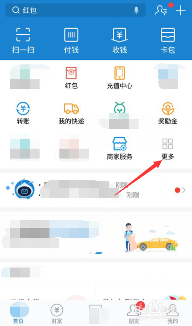 先打开手机端软件,接着找到软件应用,点击箭头所指“更多”按钮,可以展开更多应用。