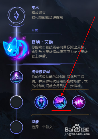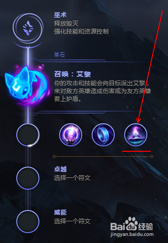 选择“巫术”作为“主系符文”(强化技能和资源控制)。