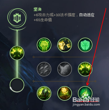选择“坚决”作为“副系符文”(耐久和控制)。