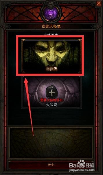 在地图中我们奈非天方尖碑,然后选左键点击奈非天密境,开启密境我们如果没有大秘境的钥匙的话选择第一个即可具体进入不走如下图。