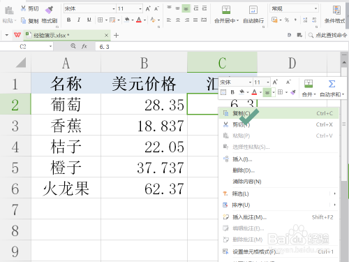 将列头标题改为“美元价格”,即可完成数据的批量扩大/缩小若干倍。
