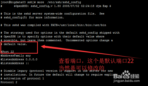 就可以查看到有说明,默认端口为22,具体如下图所示