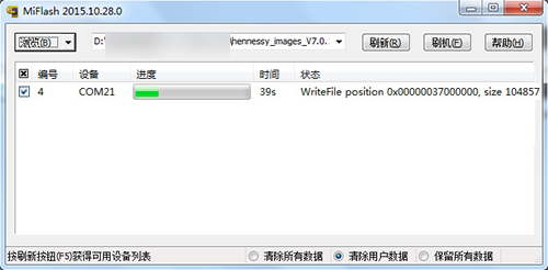 然后点击“刷机”,就开始给手机线刷了,如下图所示:
