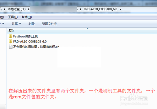把上面下载下来的刷机包在电脑上进行解压,然后解压出来有个文件夹,文件夹里还有两个文件夹,一个文件夹里面放的是刷机工具,一个文件夹里面放的是rom文件,一会要用到,如下图所示: