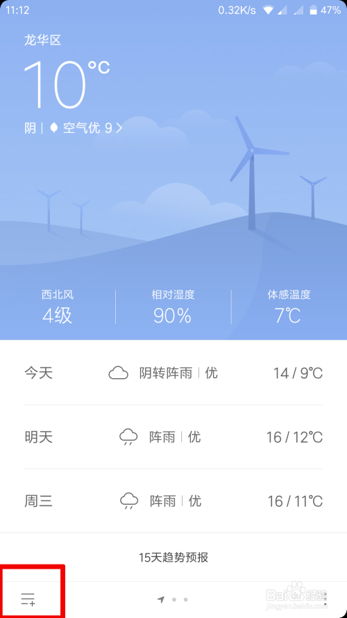 去旅游玩的,天气很可能就是影响心情的关键,想去的地方玩不知道天气情况,今天教大家在小米手机上个如何添加其它地方的天气情况。