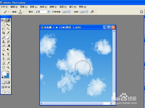 我们这时候就可以用画笔在天空的背景下画云彩了,这是最基本的云彩,大家还可以制作别样的云彩。