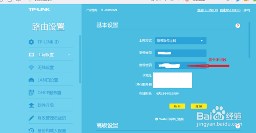 点击上网设置,这里的宽带密码是不能修改的,是牵宽带时分配的