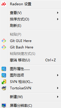 当我们安装成功之后,在桌面右击的时候可能不会出现svn的相关的操作选项,这时候需要重启一下电脑的系统,才会出现。当成功出现了下面的图片的时候,说明已经安装成功了,如下图所示: