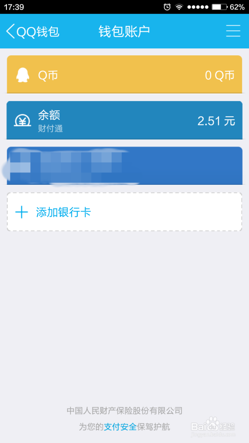 在钱包账户中,你能够看到你有多少个Q币和你的余额是多少,你可以绑定你的银行卡。我们点击余额进入到下一界面。