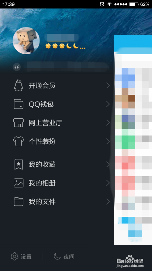 用手在界面上往右划一下,或者点击界面左上角你自己的头像。会有一个菜单。点击菜单中的第二个选项,进入到你的QQ钱包。