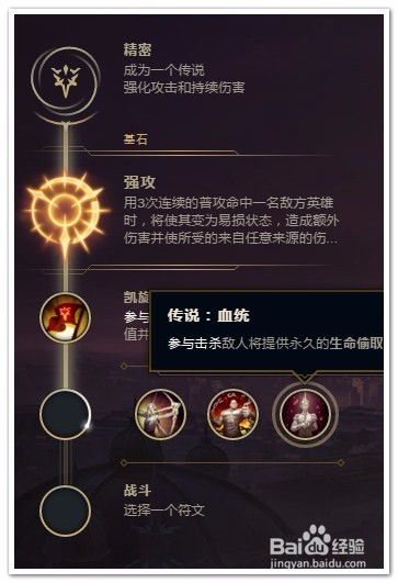 选择“精密”作为“主系符文”(强化攻击和持续伤害)。