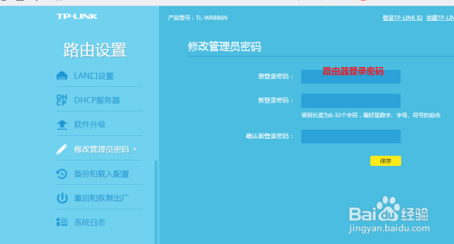 点击修改管理员密码,进入到该页面,这里的密码是路由器登录的密码,如图