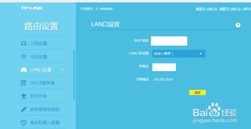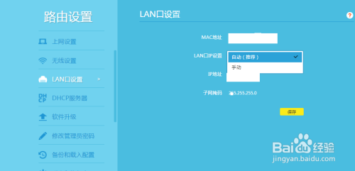 点击LAN口设置,进入到该页面,这样显示着ip设置,一般使用默认的,如图
