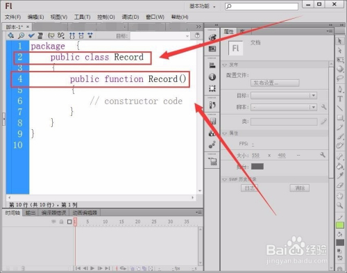 - 新建Flash文档时,应选择“ActionScript3.0”选项。