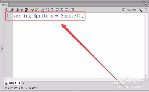 如下图所示,变量img后的Sprite表示一个类,是数据类型,new运算符后的Sprite是构造函数名。