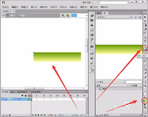 选择“编辑栏”中的“矩形工具”,在舞台绘制一个长方形。