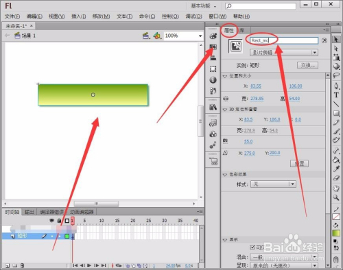 选中矩形元件,在“属性”面板中,将其“实例名称”改名为“Rect_mc”。
