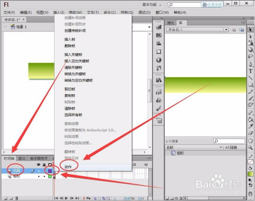 新建一个图层命名为“代码”,在图层的第1帧右击,选择“动作”选项。