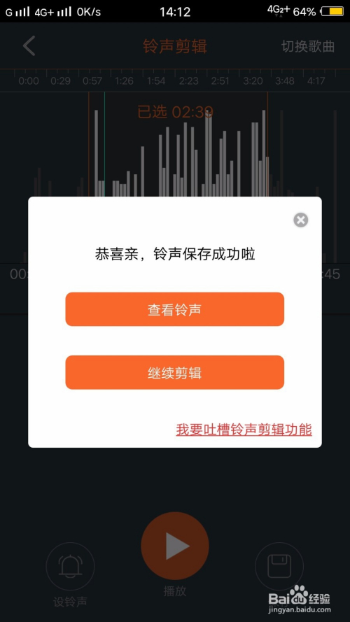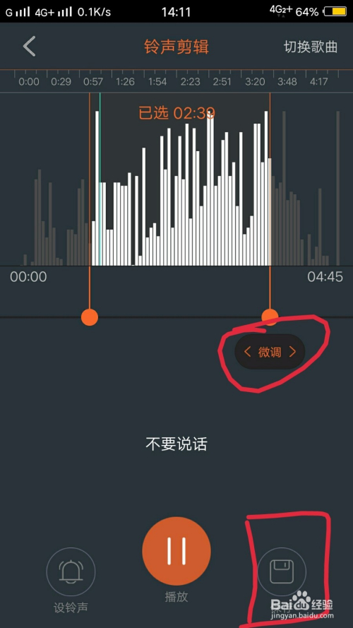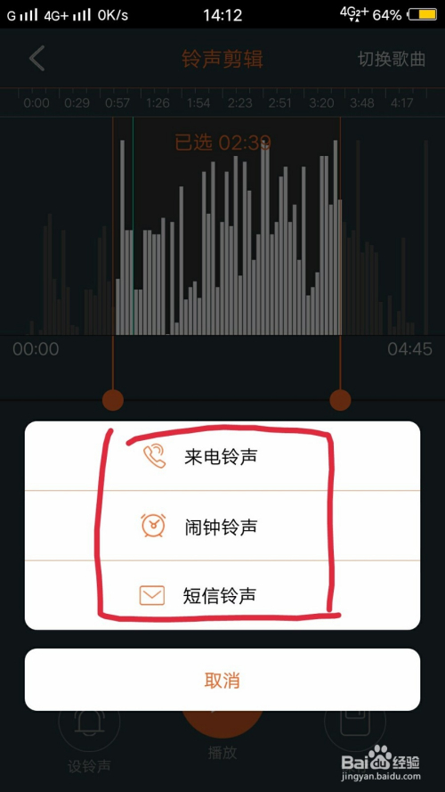 比如我们随机选择一首歌曲,点击后系统会自动帮你截取歌曲的好听部分,但是你也可以根据箭头滑动进行微调。