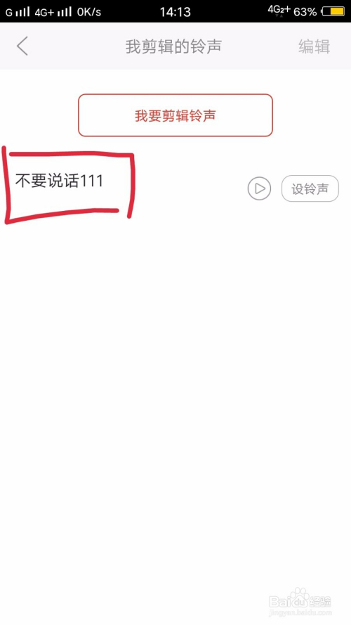 你可以在左下角的‘我的’里面找到你刚才剪辑过的铃声,选择‘我剪辑的铃声’,点开后这里就是你刚才编辑的铃声。