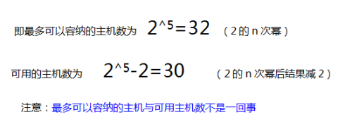 所有可用的主机数为主机号所剩下的5位掩码中算出。