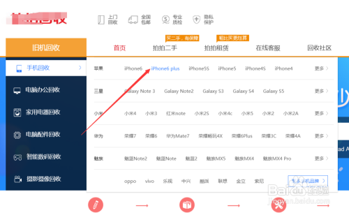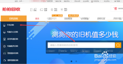 进入京东以旧换新首页,可以直接在输入框里输入你的二手手机型号,也可以按照左侧的导航来一步步选择,如下图所示。
