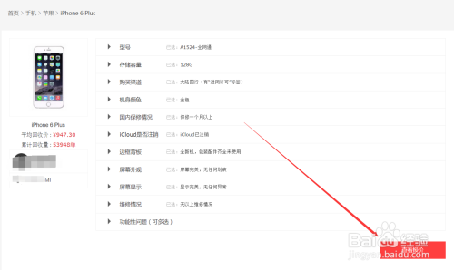 进入二手手机回收评价详细页面后,直接根据页面显示的内容如实选择,如下图所示。