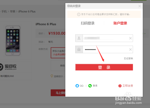 点击后,京东弹出登录对话框要求登录,输入京东帐号和密码,然后点击登录,如下图所示。