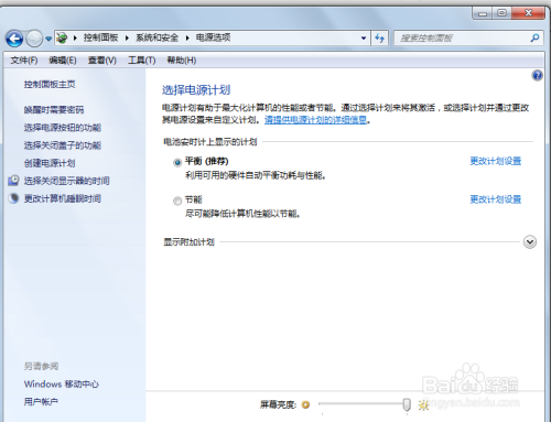 注意:在学习一下调节电脑的亮度,在“控制面板”-“系统安全”-“电源选项”中找到。