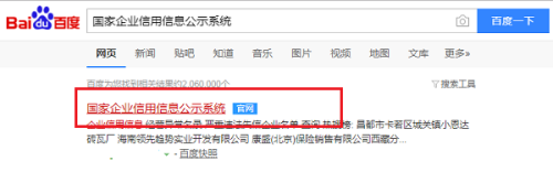 第一步在我们的电脑里面百度搜索国家企业信用信息公示系统,点击进去,如下图所示: