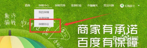 在申请保障之前我们需要在页面上方找到“保障中心”下拉菜单栏“保障协议”了解清楚。