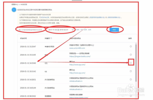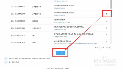 在历史记录中找到需要申请保障的网站。点击下一步。