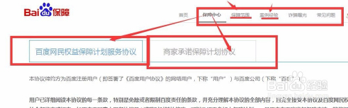 会看到“百度网民权益保障计划”“商家服务承诺保障计划”两大块,我们只要“百度网民权益保障计划”即可。