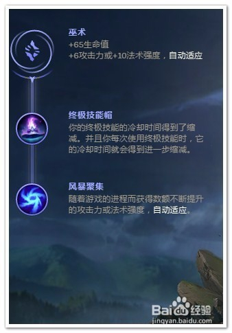选择“巫术”作为“副系符文”(强化技能和资源控制)。副系符文1里选择“终极技能帽”,因为木木能够出的减CD符文不多,叠满“终极技能帽”能够减百分之十五CD;副系符文2里选择“风暴聚集”,后期打团时加法强,加强木木的伤害。