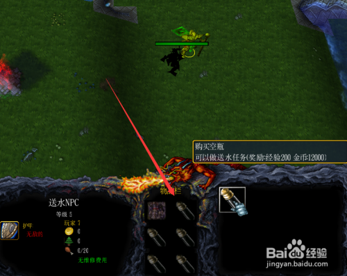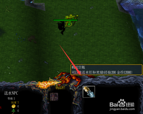 当英雄一靠近这个泉水的时候,英雄背包里的空瓶子就立马装满了水,此时就可以回去到NPC那里了,如下图所示。