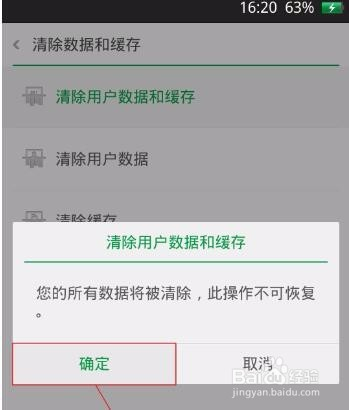 4、为了保证刷机后更稳定,大家可以双清一下。即:点击“清除数据”——“清除缓存”。