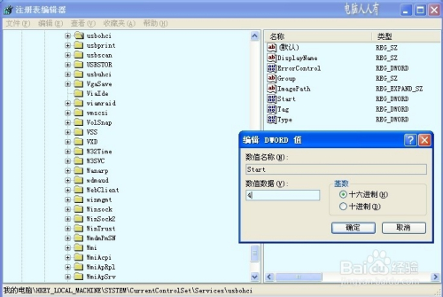 很多软件都有禁用u盘的功能,如果手头有此软件,不妨点击一下,看注册表是否有变化?依次定位到:[HKEY_LOCAL_MACHINE\SYSTEM\CurrentControlSet\Services\usbehci]右边窗口的start(dword)默认设置为3,表示手动。2表示自动,4表示停用(谨慎设置此数值数据,设置之后可能会使无线鼠标等设备都不能正常使用),设置完毕,需要重启电脑才能生效。