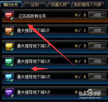 填好后,分别会出现下列几项任务,可以获得相应的奖励,但是“推荐人”是没有这些奖励的。包括签到奖励。