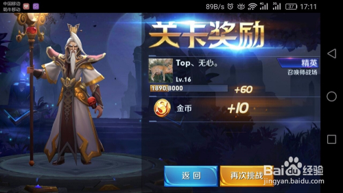 然后还有金币奖励和经验奖励,可以选择返回或者再次挑战