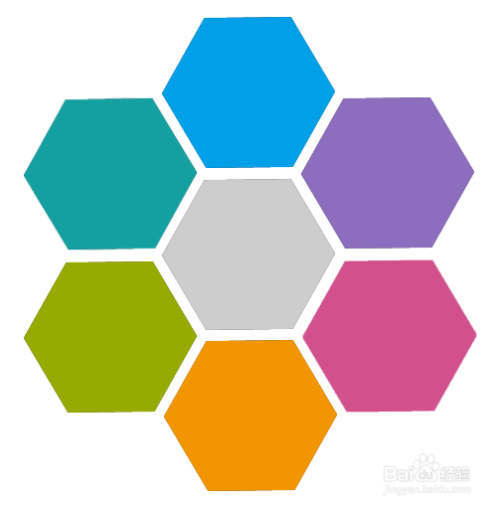 下面图片是已经给六边形填好颜色的效果,如图所示;第二张图片是之前绘画的六边形效果。