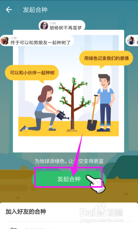 发起成功后,可以看到如图所示。接下来,就可以合种树苗了。