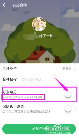 开启【好友可见】旁边的按钮,这样好友就可以看到这个合种,可以一起浇水。