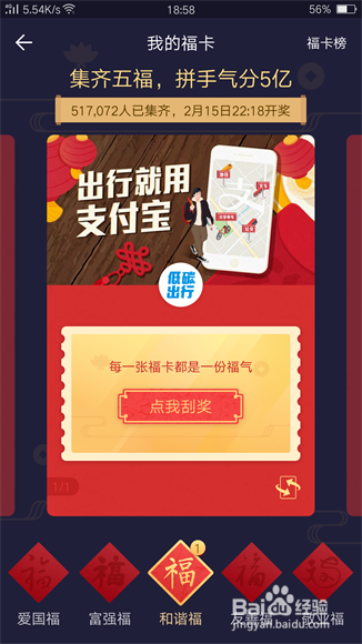 快要过年了,最新的支付宝活动又开始了,又来了一波集福卡活动,只要集齐五福就可以拼手气分五亿元红包,那怎么能快速获得福卡,集齐五福开红包呢?