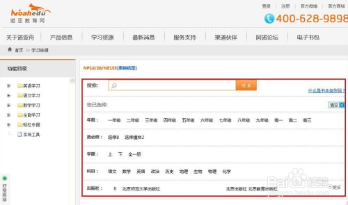 选好自己的机型之后,会看到页面有多个选项,有一年级至高三的课本点读资料,根据孩子的年级和书本的出版社选择正确的书籍。还可直接输入书本的条形码搜索哦!