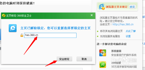 第四,重新填写你修改的主页,将你的主页的页面地址完整的复制过来,点击安全锁定就完成了。