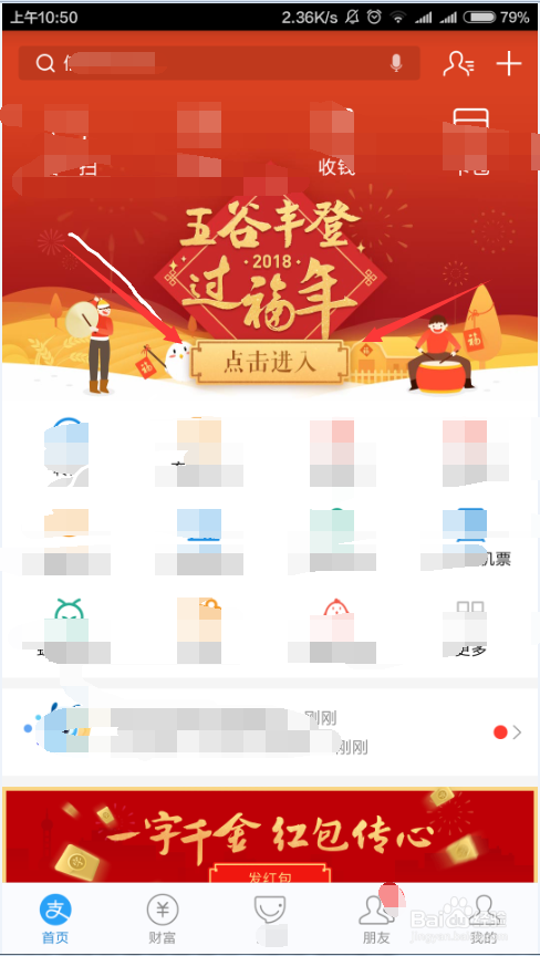 如果你的支付宝没有收金蛋的页面显示,你需要升级你的支付版本到最新版本,新版本的支付宝页面如下图所示